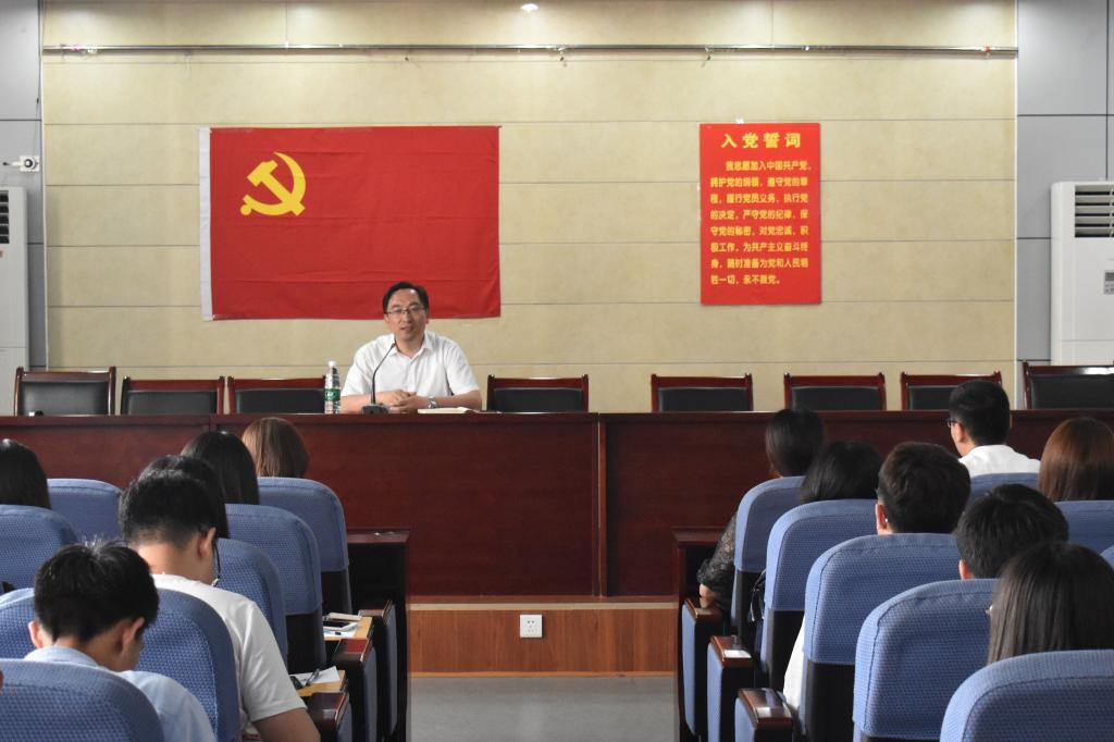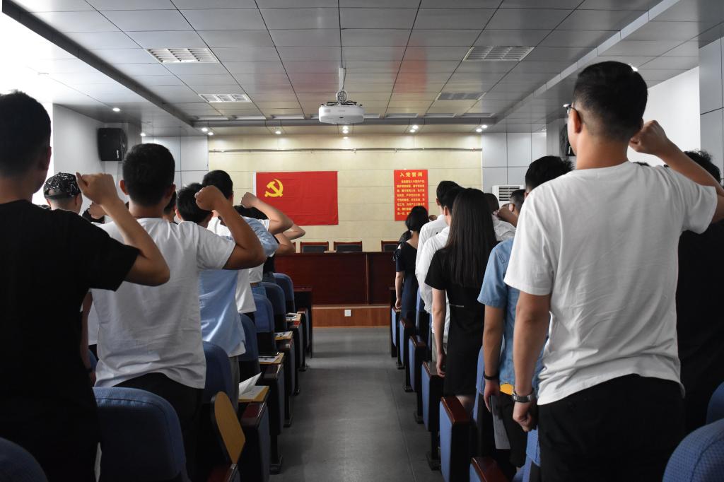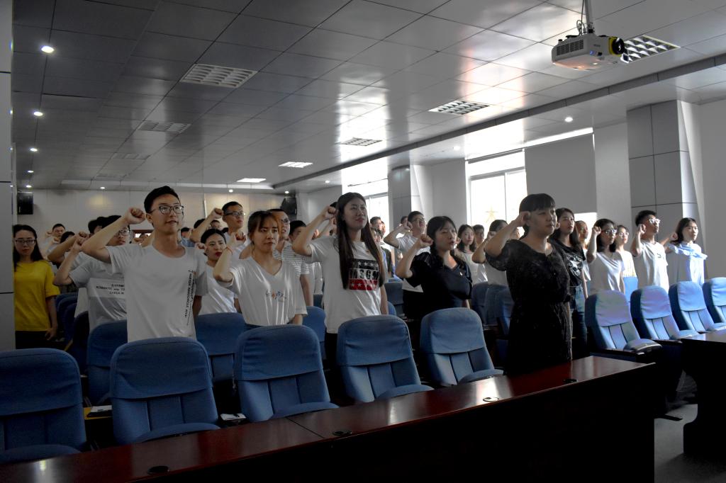 6月18日,MG冰球突破官网网站组织2019届毕业生党员在J15-219报告厅开展了“重温一遍入党誓词,再上一堂专题党课”活动。学院党委副书记郝亮,本科生党支部书记刘晶、尚军、王贝贝,2019届毕业生党员参加了本次活动。