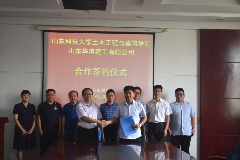 会谈结束后,由王崇革院长和高立滨董事长分别代表MG冰球突破官网网站和山东华滨建工有限公司进行签约。签约仪式后,双方参会人员进行了合影留念并参观了实验中心。