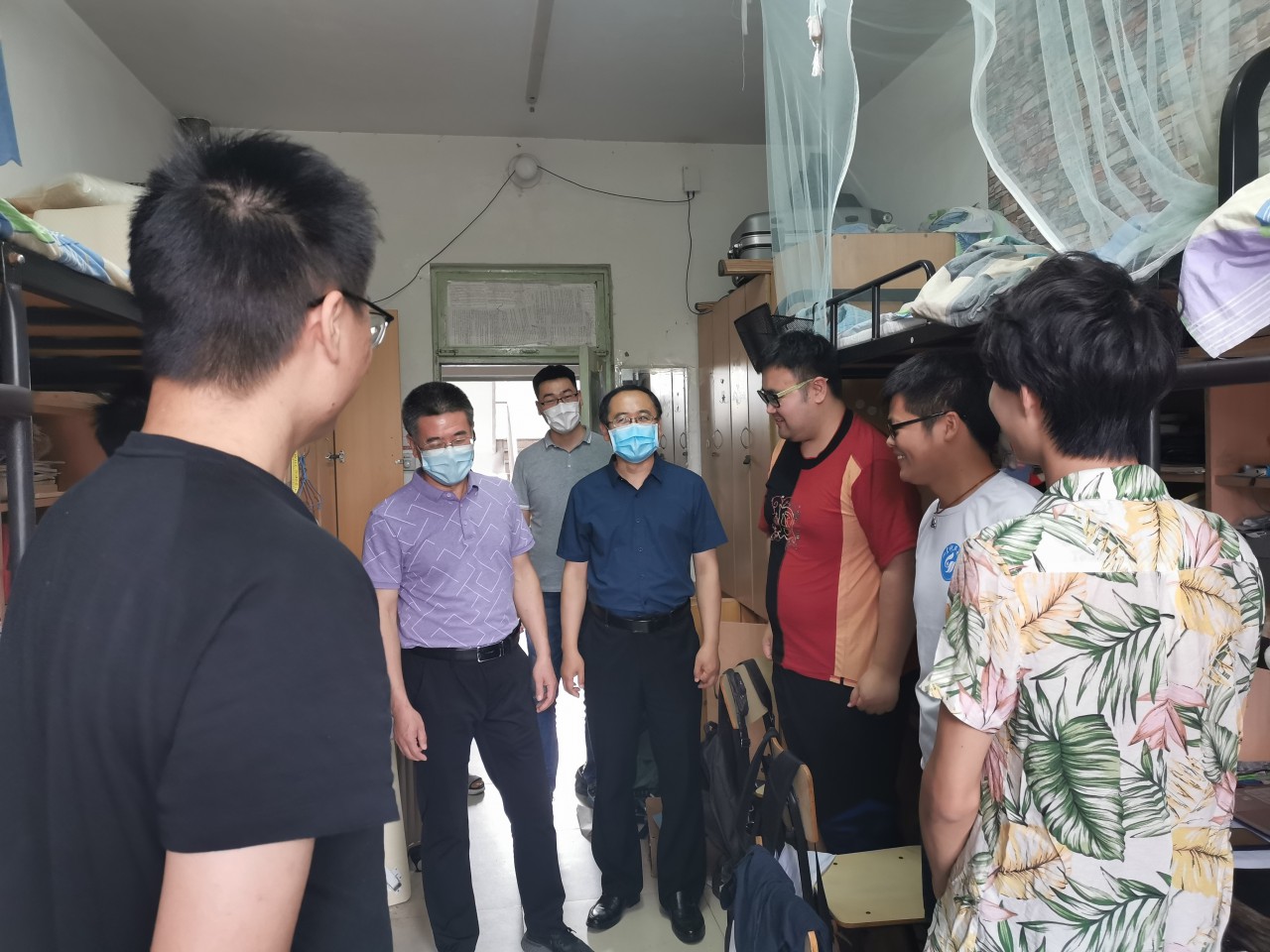 又是一年离别季,又是一年毕业时。带着对2020届毕业生的深情牵挂和美好祝愿,MG冰球突破官网网站党委书记宋西路,院长王崇革,党委副书记、副院长高静及团委辅导员深入毕业生宿舍进行走访,亲切看望毕业生,热情询问毕业生的工作情况、离校安排及打算,关切的询问毕业生们有什么的困难、有什么需要学院的帮助,勉励他们要带着梦想和感恩之情走向工作岗位,创造新的辉煌,用实际行动向母校报喜。