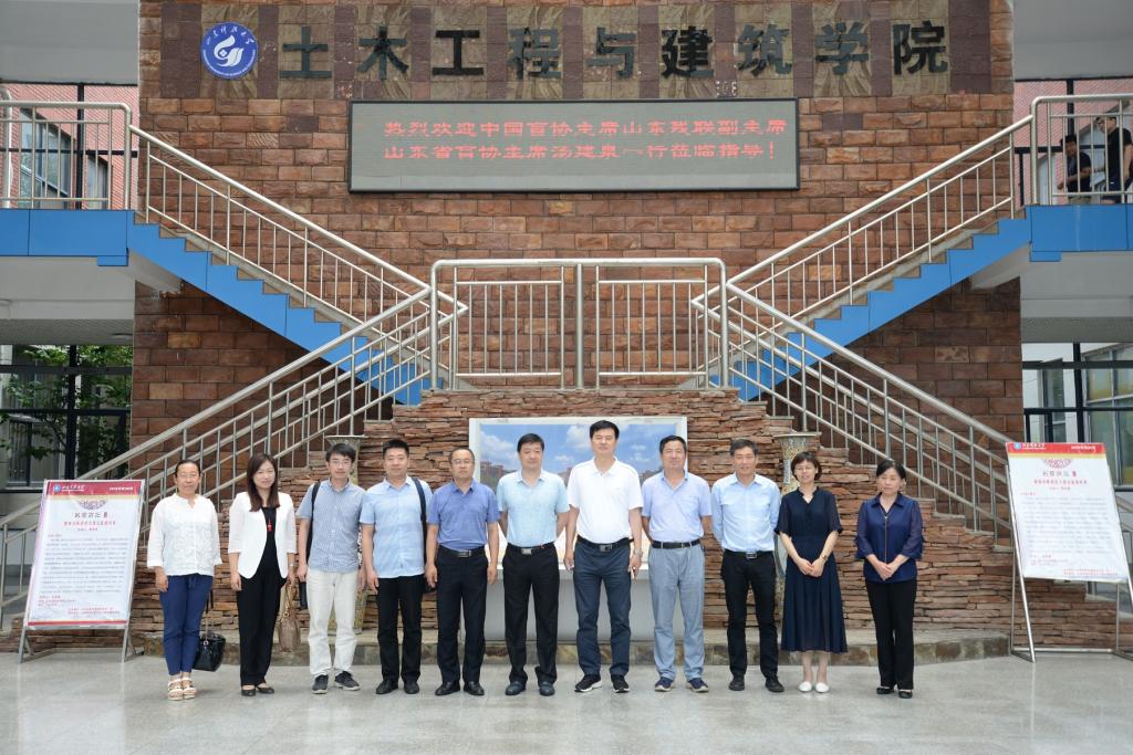 7月8日上午,中国盲协副主席、山东省残联副主席汤建泉,在山东旭天康体科技有限公司总经理王克旭的陪同下,莅临MG冰球突破官网网站参加无障碍建设座谈会。MG冰球突破官网网站院长王崇革,建筑系主任许剑峰和建筑系、城乡规划系的部分教师参加了座谈会。会议由王崇革主持。