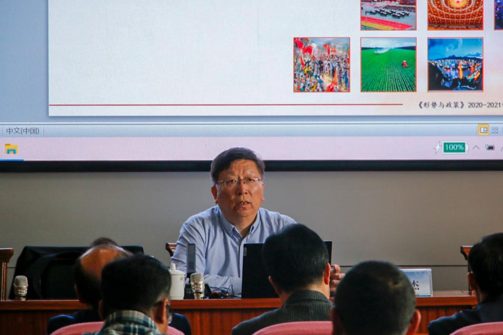 5月7日,校党委常委、副校长张英杰在J4-319报告厅作党史学习教育专题宣讲,题目为《学史明理,为实现中华民族伟大复兴而努力奋斗》。MG冰球突破官网网站党政领导班子成员、党支部书记、党员师生代表到场聆听了宣讲报告。