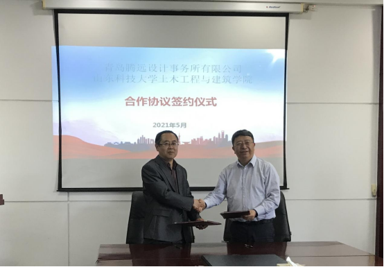 5月18日上午10时,MG冰球突破官网网站与青岛腾远设计事务所有限公司的产学合作协议签约仪式在J15-316会议室举行。出席签约仪式的有青岛腾远设计事务所有限公司总裁张舵、结构总工程师孙邵东、规划院院长陆泉、技创中心副总监李冬艳,MG冰球突破官网网站院长王崇革、副院长都浩及部分教师代表。