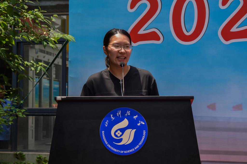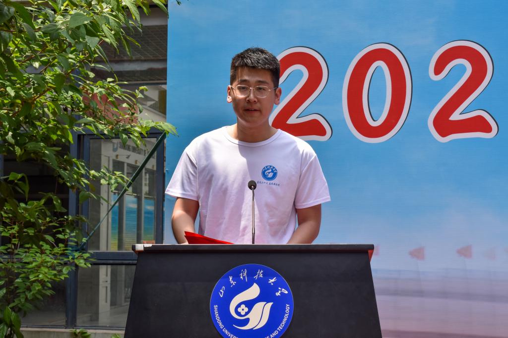 随后,毕业生代表王家轩发言,他回望了美好的大学生活,表示在未来的道路上一定会继续保持奋发向上的姿态,不辜负母院对自己的期望。