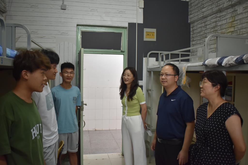 学生返校后,学院党委副书记高静带领全体辅导员深入学生宿舍,走访看望返校学生,通过与学生谈心谈话,了解学生假期情况以及返校思想动态,为同学们上好开学“安全”第一课。了解当地疫情防控情况,向同学们普及疫情防控知识,帮助同学们排查宿舍安全隐患,提醒同学们注意宿舍安全用电、防范诈骗,引导同学们养成良好的生活习惯,营造积极向上的宿舍文化氛围。