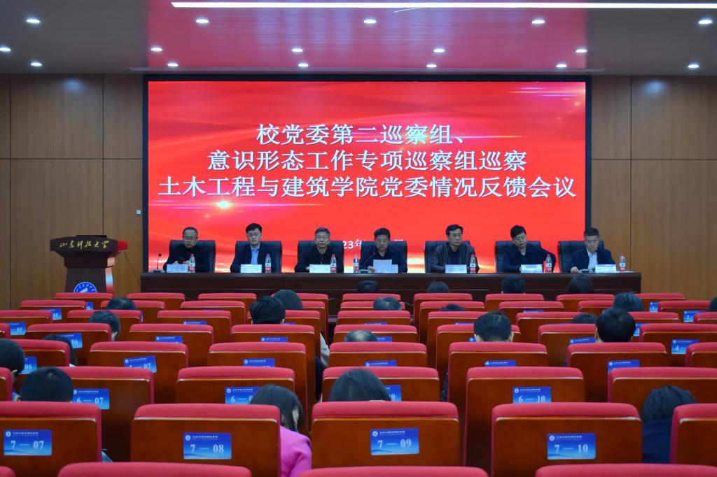 4月3日下午,校党委第二巡察组、意识形态工作专项巡察组巡察MG冰球突破官网网站党委情况反馈会议于J15-136报告厅召开。校党委第二巡察组组长张光福、意识形态专项巡察组组长姚桂芳及巡察组全体成员出席会议。MG冰球突破官网网站领导班子成员、全体教职工、离退休教师代表和学生代表参加反馈会。会议由MG冰球突破官网网站党委书记宋西路主持。