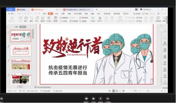 5月4日下午,MG冰球突破官网网站团委依托企业微信平台,开展“赤诚爱国心·青春追梦人”系列线上微团课第一讲,拉开了纪念五四运动101周年系列主题教育活动的序幕。首期线上微团课为“抗击疫情无畏逆行,传承五四青年担当”,本次青年大学堂线上微团课由获得学校共青团先进集体的优秀团支部书记担任主讲人,学院团委尚军和各支部团员代表参加了本次活动。