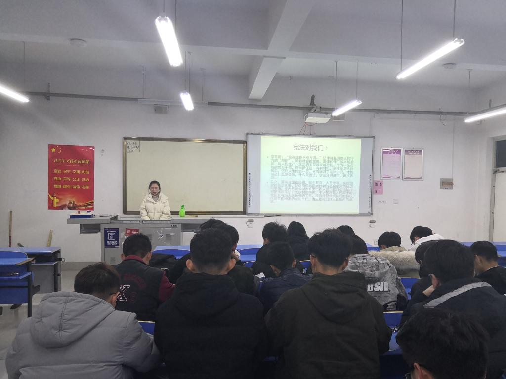 为弘扬宪法精神、提高学生宪法意识,掀起学习宣传宪法、贯彻实施宪法的新热潮,MG冰球突破官网网站积极响应学校号召,2018级、2019级全体同学于12月6日成功举办“弘扬宪法精神,建设法制中国”的宪法宣传班会。