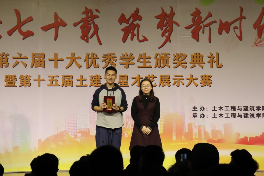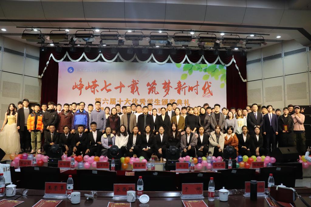 12月3日,MG冰球突破官网网站于大学生活动中心隆重举行第六届“十大优秀学生”颁奖典礼暨第十五届“峥嵘七十载 筑梦新时代”土建之星才艺展示大赛。MG冰球突破官网网站党委副书记(主持工作)宋西路、院长王崇革、团委书记于娜及全体专兼职辅导员到场观看。