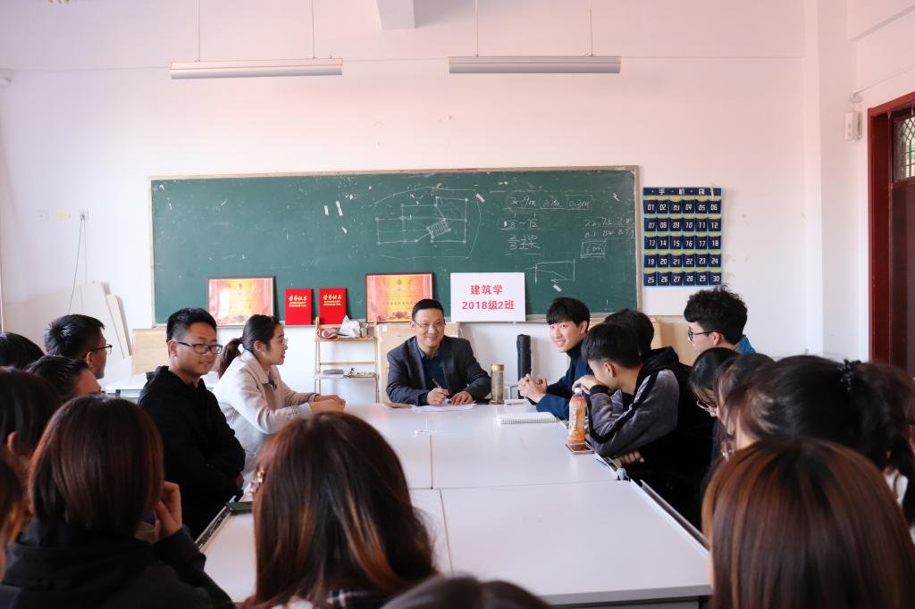 11月8日,MG冰球突破官网网站副院长张宪堂参加了建筑学18-2班班会,该班级为领导干部深入基层联系学生的对接班级。本次班会主要以座谈会的形式进行。