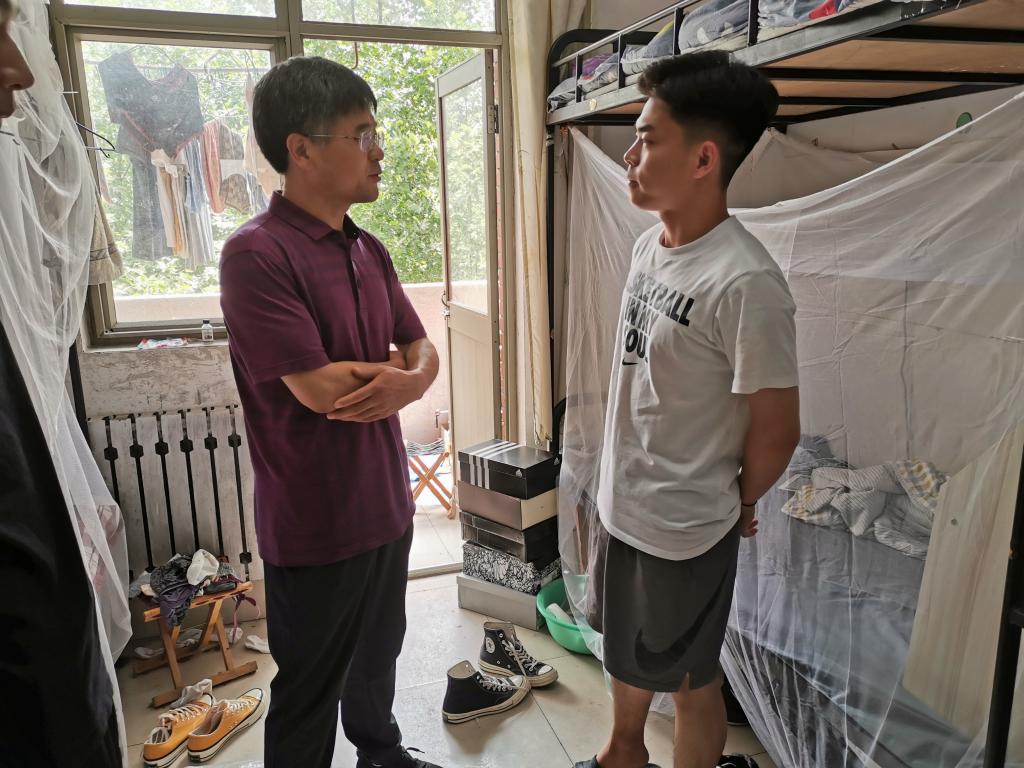 在GB2公寓楼,走进每间毕业生宿舍,学院领导都同毕业生亲切的交谈。他们热情询问每位毕业生的发展情况及离校安排,细心询问同学们近期存在的困难和需要,认真叮嘱离校前的各项注意事项。对于工作的同学,领导们叮嘱他们要俯下身子、踏踏实实的从基层做起;对于深造的同学,领导们鼓励他们在新的平台要继续秉持“惟真求新”的校训,以学习长真知,以实践促发展;对于考研二战的同学,领导们贴心安慰他们,劝解他们要重拾信心,坚持不懈的为梦想奋斗。