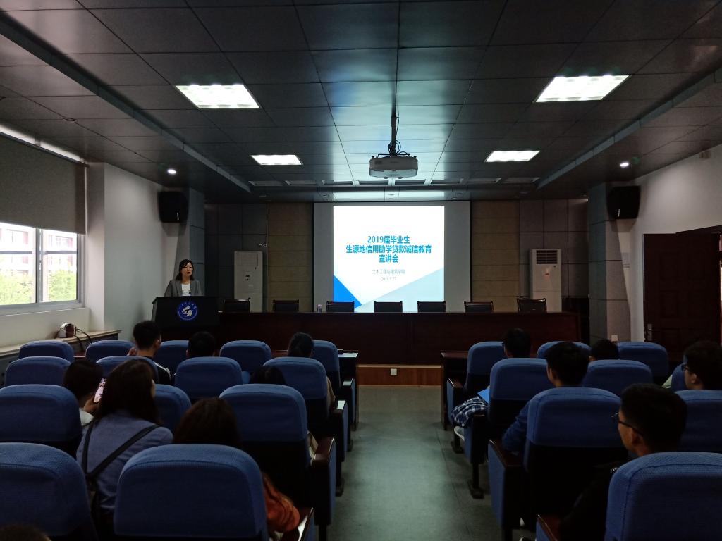 倾心助学,为梦想插上翅膀;感恩还贷,给人生许下承诺。5月27日下午,MG冰球突破官网网站在J15-219举行2019届毕业生生源地信用助学贷款诚信宣讲会,学院相关毕业生参会,会议由团委老师鲍娜娜主持并主讲。