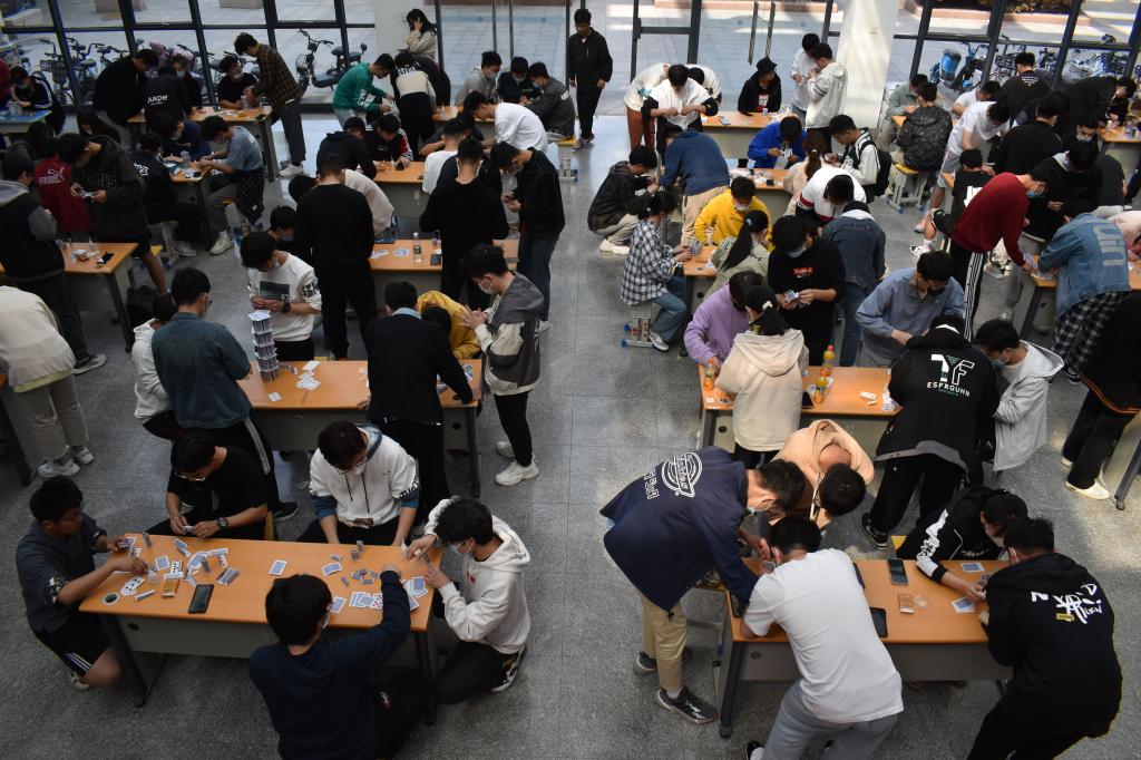 此次比赛要求参赛选手利用组委会提供的材料——1副纸牌和一瓶仅用于扑克的粘结胶水,按照统一题目《巧垒纸牌》完成结构模型制作,制做结构时必须保证每一张纸牌的完整性,不能剪开但可折叠。参赛选手需要在规定时间20分钟内用纸牌和胶水进行结构设计,在能承受住1kg荷载的情况下,高度越高得分越高。