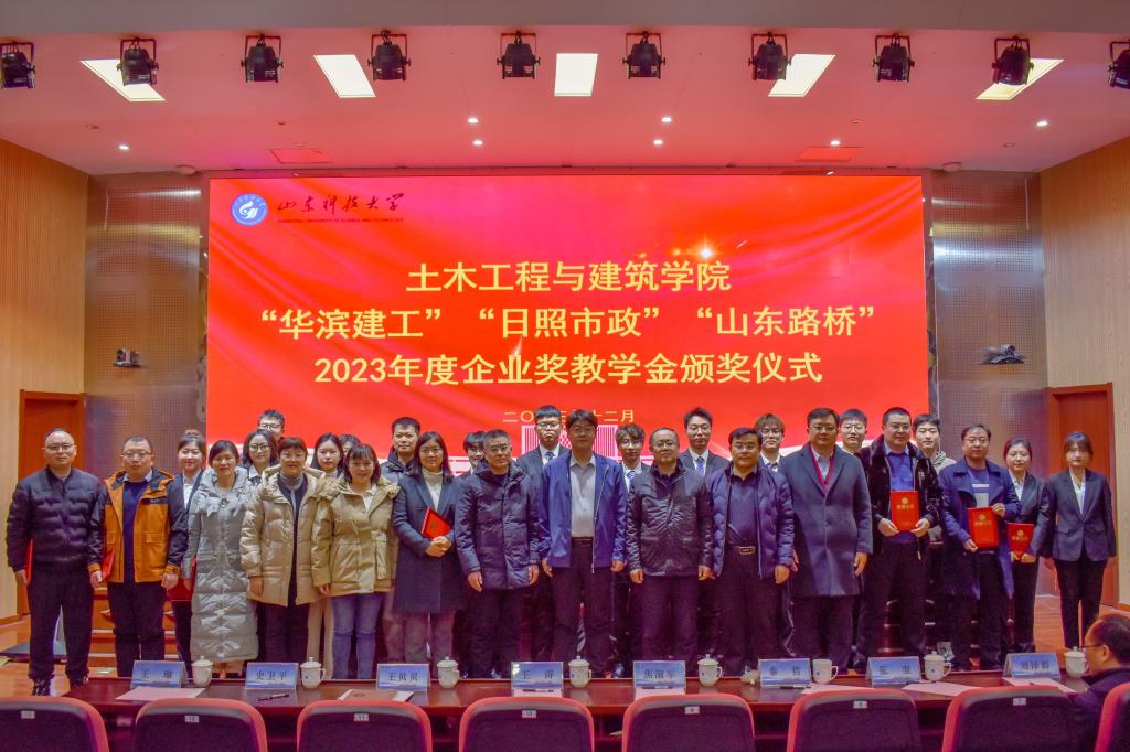 12月22日,MG冰球突破官网网站在J9-144报告厅举行2023年度“华滨建工”“日照市政”“山东路桥”企业奖教学金颁奖仪式。学校学生工作部(处)部(处)长、校团委书记尹立明,日照市政工程集团副总经理袁正君、爆破公司经理焦淑军,山东省路桥集团青岛分公司党总支书记、副总经理曹建军,安全总监王涛,合作发展处副处长王荣超,MG冰球突破官网网站党委书记宋西路、院长王崇革、党委副书记高静、副院长李朋、院长助理秦哲及师生代表参加了颁奖仪式。仪式由高静主持。