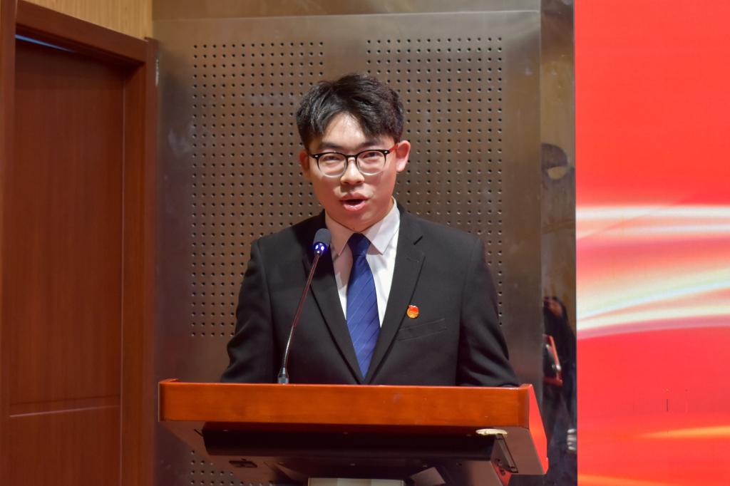 “日照市政奖教金”奖教金获得者、学院MEM中心副主任孙凌志在发言中对企业关心教育事业表示感谢,分享了自己从事教育工作的心得体会,表达了自己“初心如磐石,奋楫当笃行”的决心。获奖学生代表闫楚东在发言中对学校老师的辛勤培养和企业领导的关心鼓励表示衷心感谢,并承诺要坚定理想信念,不断扎实学识,提高创新意识,常怀感恩之心,争做有理想、敢担当、能吃苦、肯奋斗的新时代好青年。