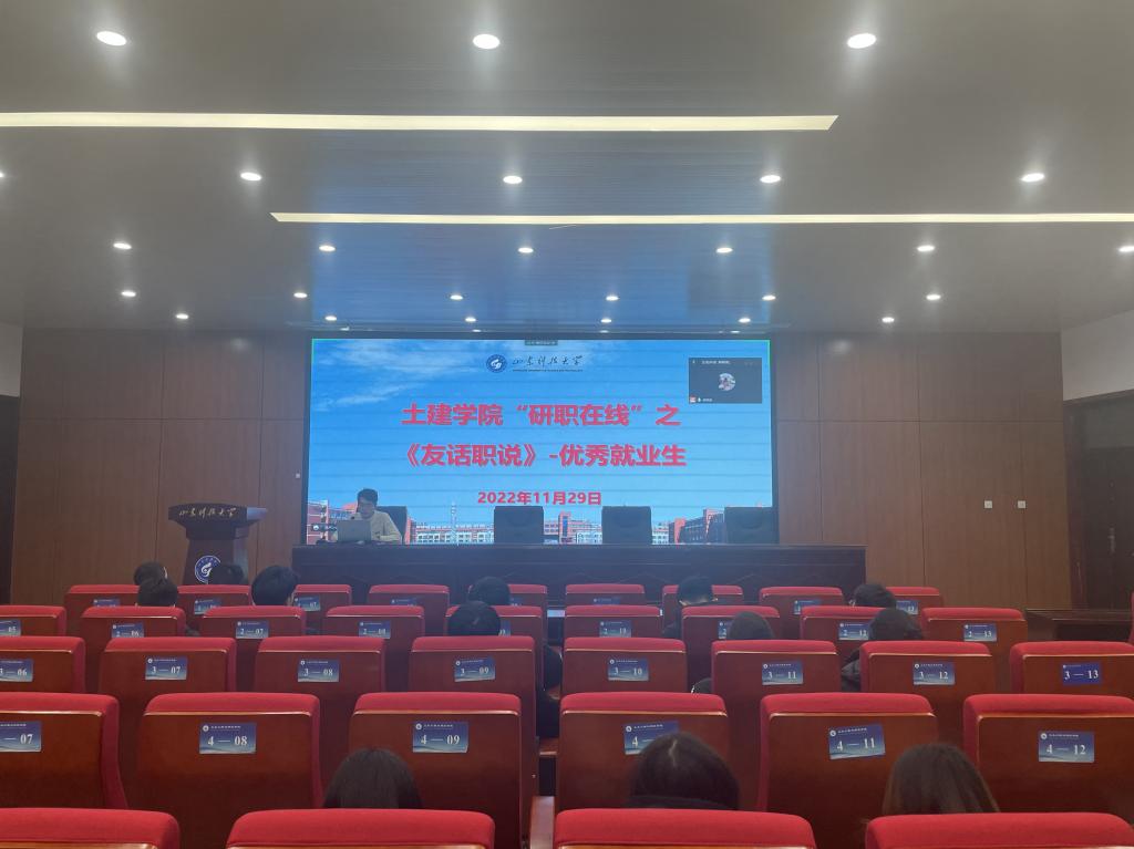 为引导学院学生做好职业生涯规划,提高毕业生就业竞争力。11月29日,由校团委主办,MG冰球突破官网网站承办的“研职在线”系列活动之“友话职说”就业经验分享会在J15-136会议室举办。本次活动邀请到巩越、吴迪两位优秀毕业生分享就业经验,会议由郑驿凯主持。